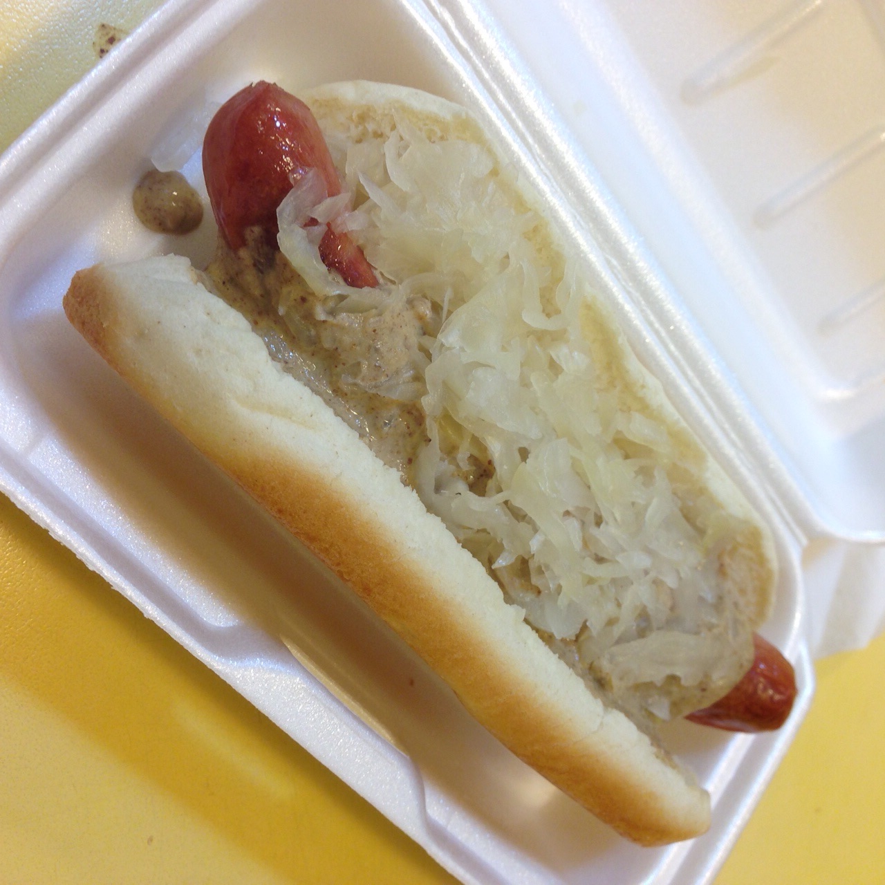 Just look above these words. I don’t even need to write, but I will. On the Upper East side on 86th and Third Ave neon signs glow, beckoning all passers by to come in for a snack. There’s not much to this place, and there doesn’t need to be. The staff is very friendly, and they are proud to be there. When I asked for their best dog, the man behind the counter genuinely cared to know what my taste buds preferred. Eventually we came to the conclusion that I should have the classic. Sauerkraut and mustard. I knew that this was the classic coming into the place, and I was scared. Generally, I’m not a ‘kraut guy. I find it to be overbearing, and kind of like my Frankie’s on the Go post, that guy at the party who is loud and crappy and takes all the attention. But why, Jack? Why did I ever doubt the Germans? They invented the dog, why would I question their topping choices!? The spiciness of the mustard and the sour taste of the kraut mixed together to form this new harmonious flavor that I’d never tasted before. It reminds me of the first time I had a Yuengling. There’s something else out there? Shocked, I didn’t even realize how good the actual sausage was until the second bite. The snap is there, the temperature is perfect, and the bun is toasted with care. This is a dog of champions. Oh, and they’re 3 bucks? I’ll have another.