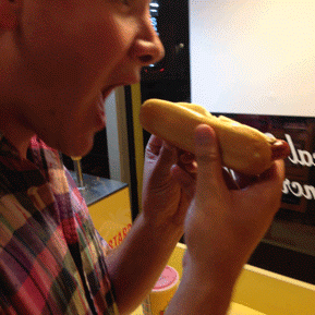 The second dog: plain with mustard. Look at those char marks on the dog. Look at how awesomely I placed the mustard on that bad boy. Look how epic-ly I devour it. I am in my element. Is this place perfect? Is this the best in New York? While it may be incredibly close, it never will be the king. For those that have read my “About Me” page, you know what I think about mustard. Keep it yellow. Papaya King does not have yellow mustard anywhere. I even asked, and it is nowhere to be found. While I kind of respect them for sticking to their guns, the fact of the matter is that they’ve made the wrong choice. I don’t care how much money Gulden’s is giving you, the better choice is to take money out of your pocket and literally pay French’s to be your sauce. At least have it in your restaurant.
