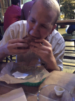 Yes, this is a classic yellow-mustard-only dog. Simple, elegant, and timeless. Pig Beach does offer some exotic toppings on their locally sourced Karl Ehmer dogs that I’d love to try another time – cheese, pulled pork, and pickled peppers – however, I was also hankering for a pulled pork Sammy so I didn’t want to encourage obesity. The first thing I noticed was the bun: a Martin’s potato roll, no question about it. It was also grilled, showing some char on the side, which never fails to impress if done correctly. I applied the mustard from the big jug-pump sort of simple machine, so obviously that was done to perfection. You’d be amazed at how many people do this correctly. It is literally a simple machine, like a wedge, or a wheel, or a pulley. The big jug-pump machine, duh. I’m pretty sure I was fed from a big jug-pump machine as a baby, for cryin’ out loud. BJPM baby, what a hoot.